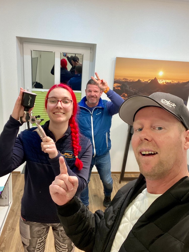 Als Unterstützung haben wir uns Fahrzeuglackiererin Lea mit on Board geholt.